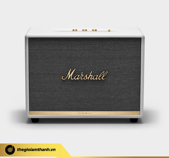 Các chi tiết đậm chất Marshall cổ điển như: toàn bộ khung viền loa được bọc da tổng hợp, lưới loa đan xen hài hòa giữa màu đen và trắng với logo hãng được đặt ở chính giữa. Nhờ đó vẻ ngoài của loa bluetooth Marshall Woburn luôn hút mắt, sang trọng và rất "thần thái".